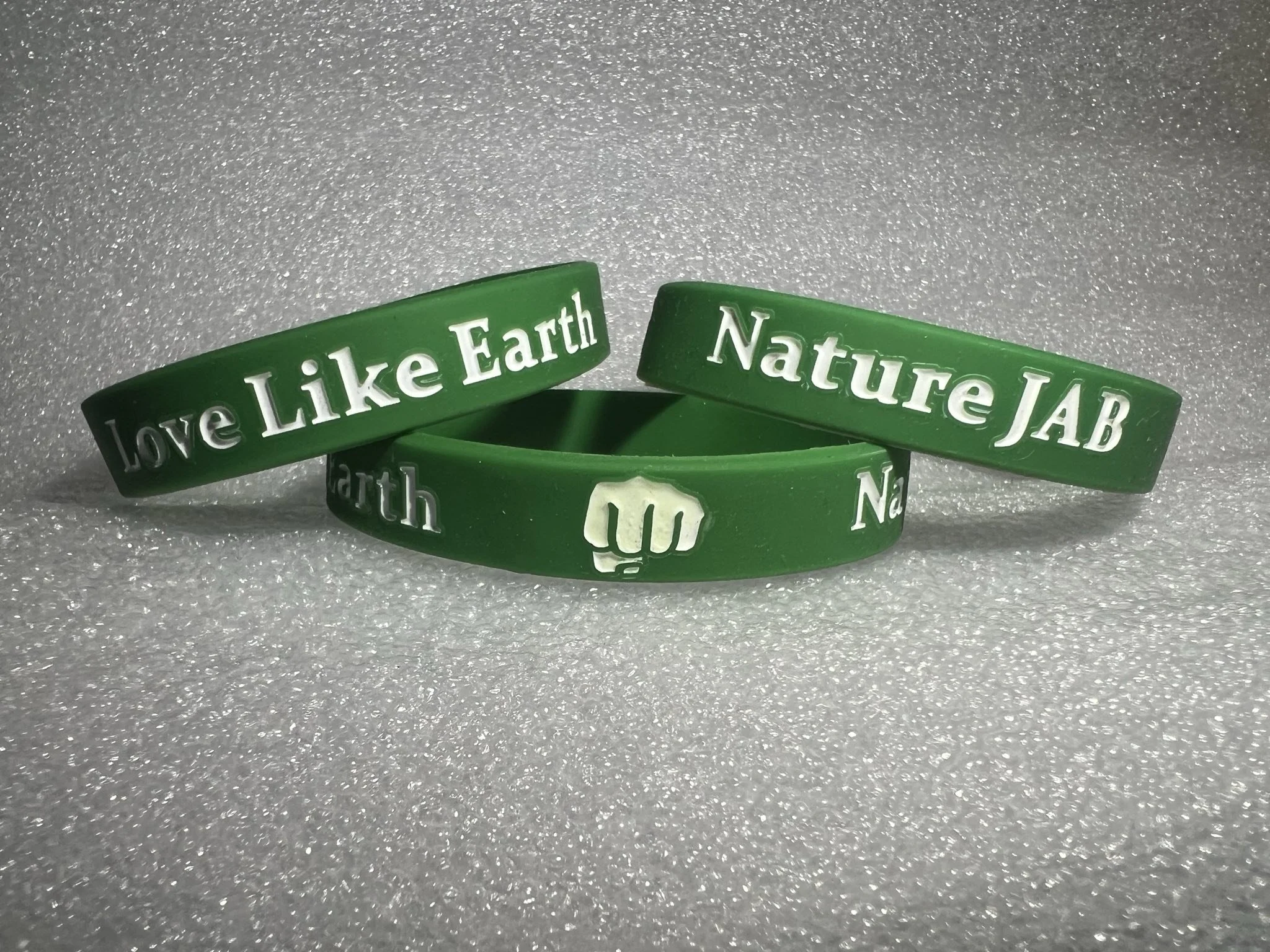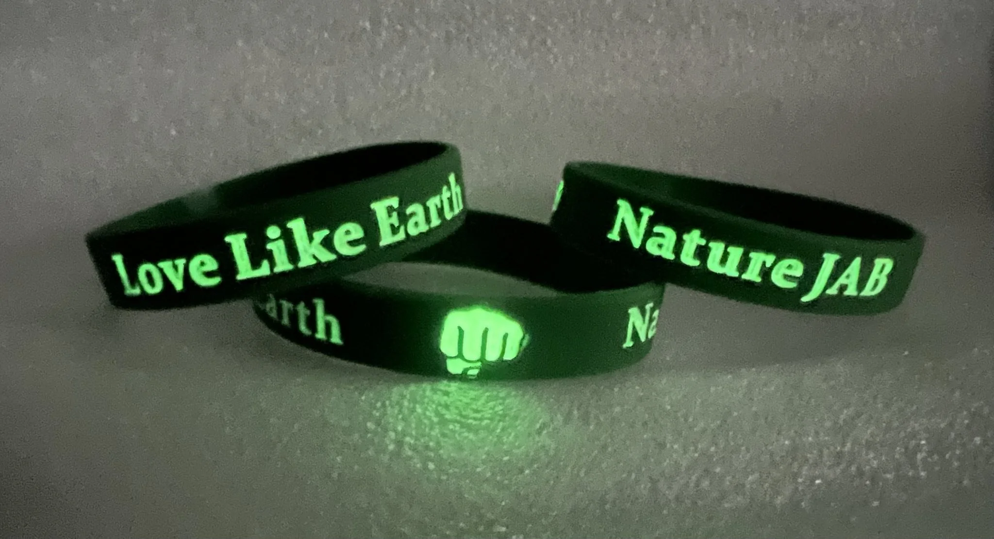 This bracelet charges in the sunlight and glows green in the dark. Show your warrior insignia with the official Naturejab bracelet!